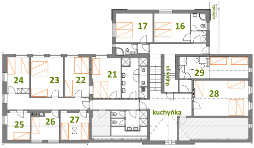– v ceně pokoje s vlastním sociálním zařízením (14,15,16,17) jsou lůžkoviny, ručnik a osuška